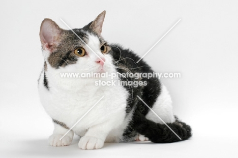 American Wirehair cat, Brown Classic Tabby & White coloured, looking away