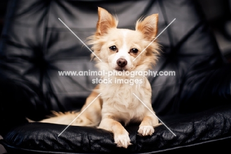 Chihuahua sitting on black chair