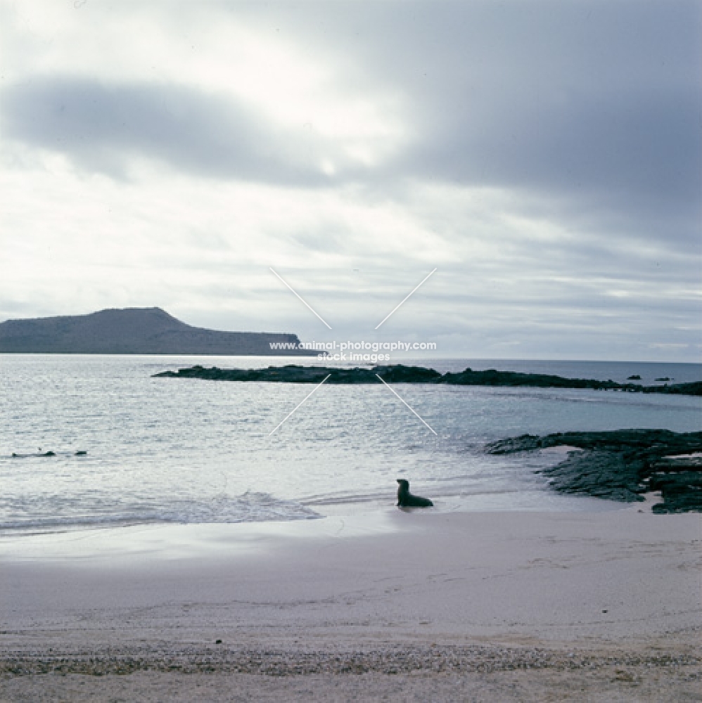 young galapagos sea lion alone on beach at seal island, loberia island, galapagos islands