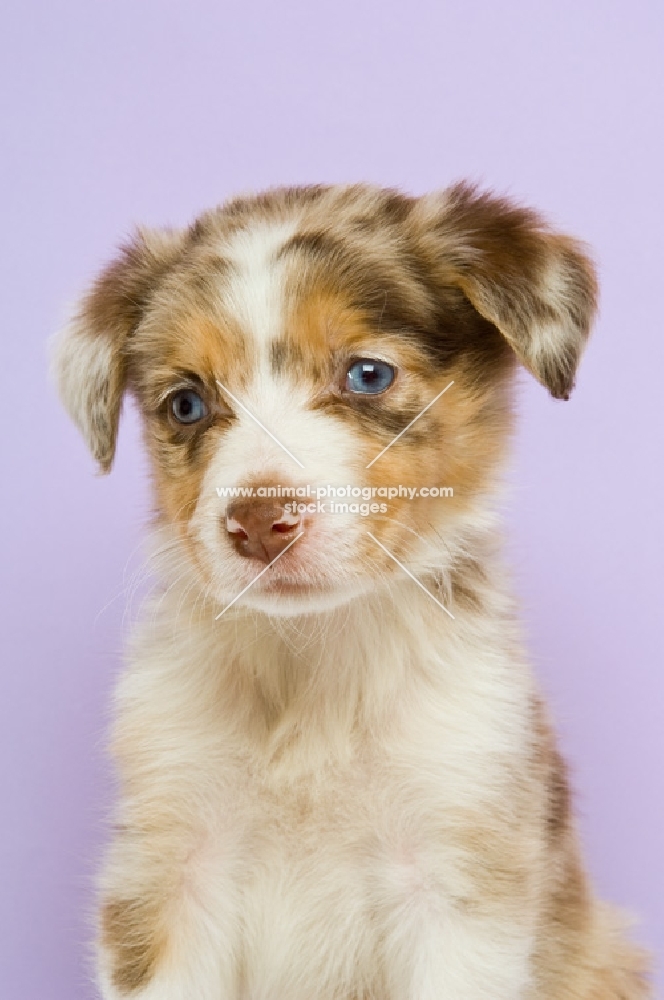 border collie puppy sitting isolated on a purple background