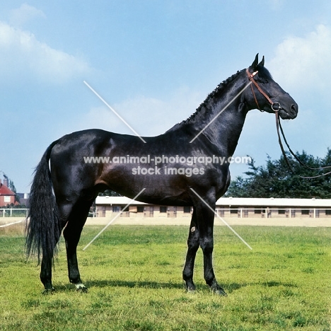 side view of Holstein stallion at Elmshorn, half throrughbred,
