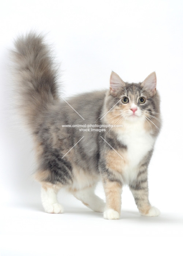 Blue Mackerel Torbie & White Norwegian Forest cat