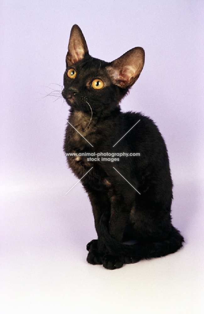 young black German Rex cat