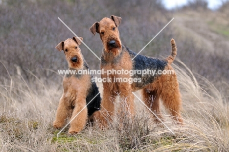 2 Airedale Terriers looking at camera
