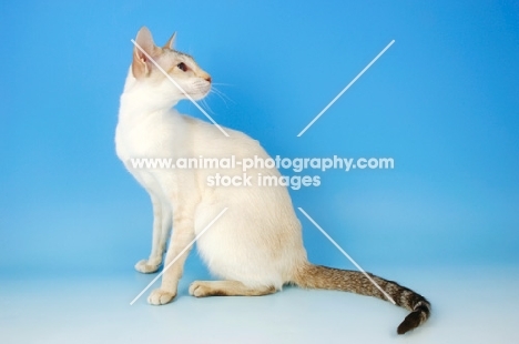 chocolate tabby point siamese looking aside