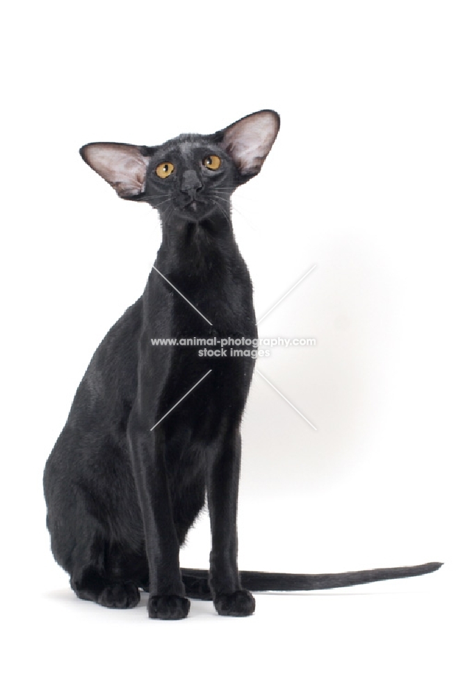 black Oriental Shorthair, looking towards camera