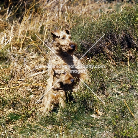irish terrier and puppy in grass