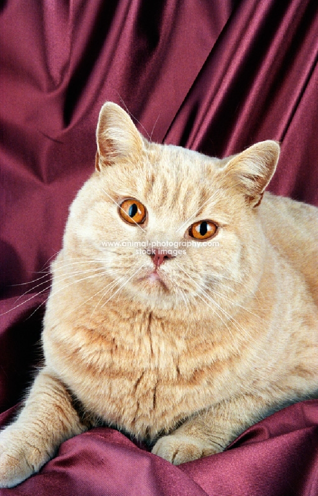 cream British Shorthair on satin