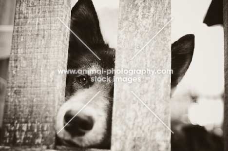 Husky Crossbreed, behind fence