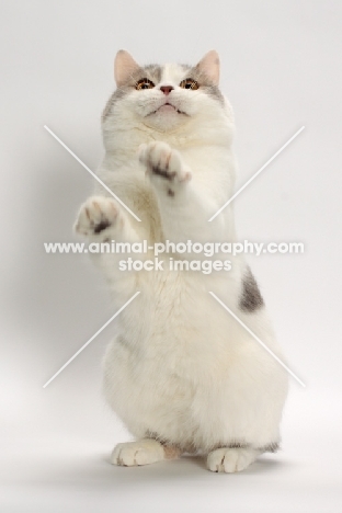 curious Blue Classic Tabby and White Manx cat