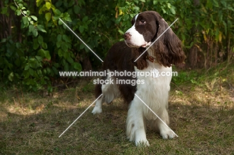 english springer spaniel with greenery background