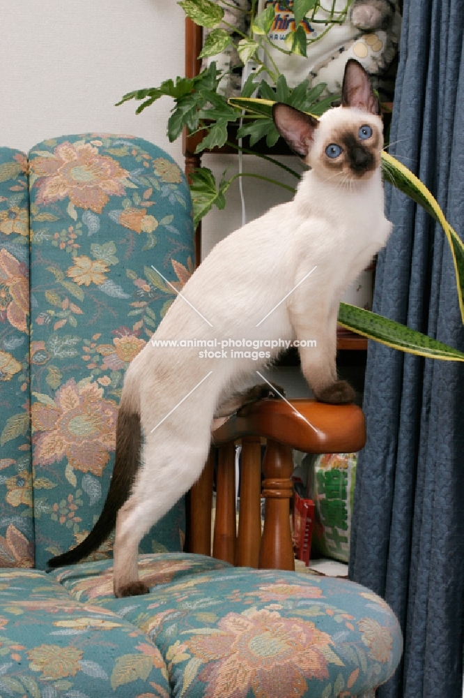 seal point Siamese cat standing on a chair