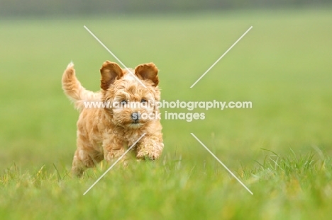Cockapoo puppy running in field