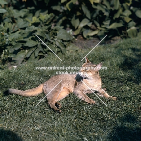int ch cenicienta van mariëndaal abyssinian cat lying on grass