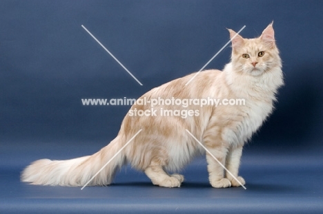 Maine Coon cat, Cream Silver Classic Tabby colour, standing