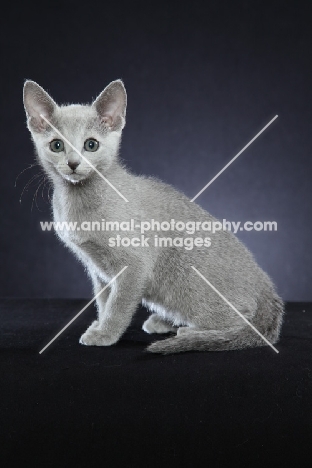 10 week old Russian Blue kitten, sitting down
